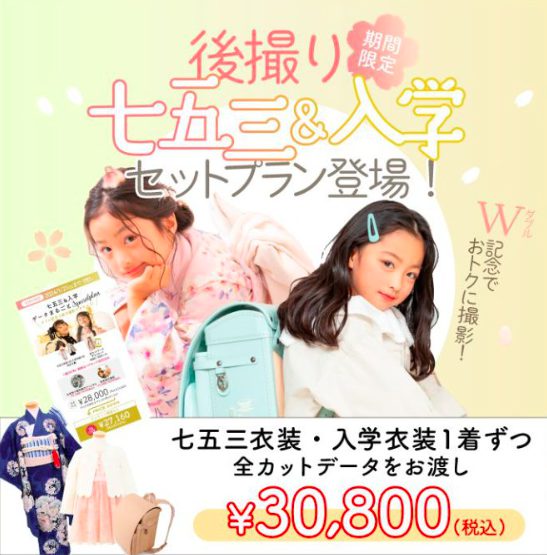 - > 【早撮りも後撮りも】七五三と入学をセットで撮影!別々で撮るよりもお得に撮れるおすすめプラン♪