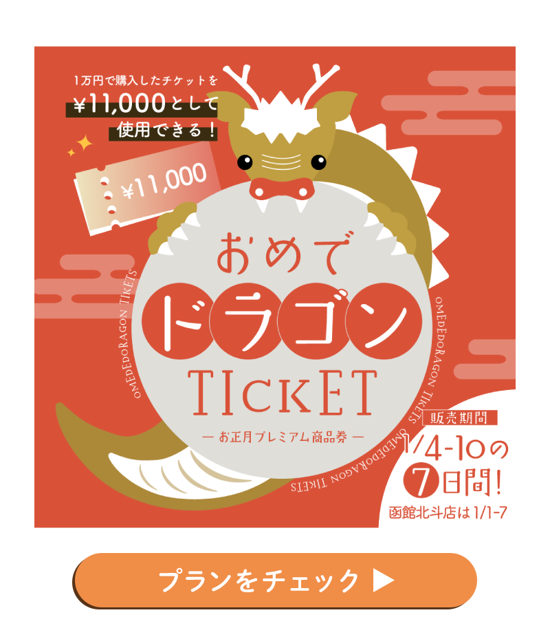 おめでドラゴンチケットとは1万円購入で1万1千円使用できる当社限定のプレミアム商品券となります🌟