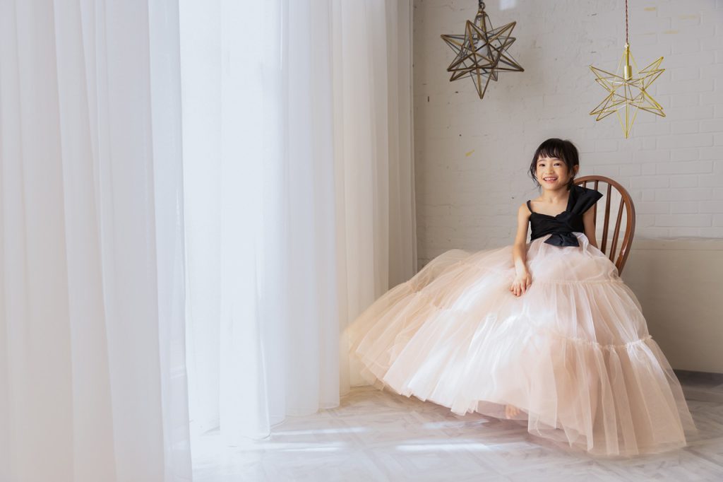 カーテンの間から差す光がお子様を照らし、自然な表情なのにどこか大人っぽいが見れるお写真が撮影できます。