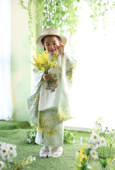 爽やかなお着物はFORESTスタジオでご撮影すると、まるで草原の中にいるよう🌱