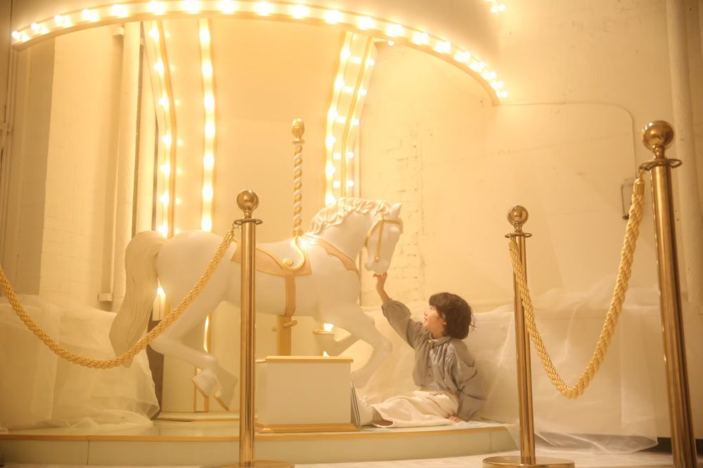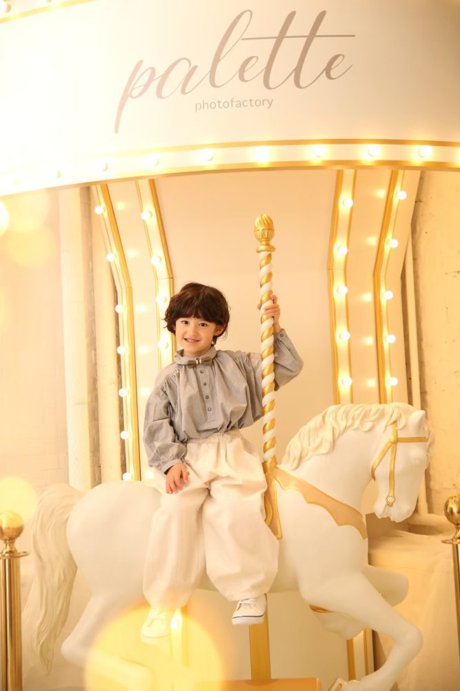 当店の目玉であるメリーゴーラントでの撮影がとても可愛い!