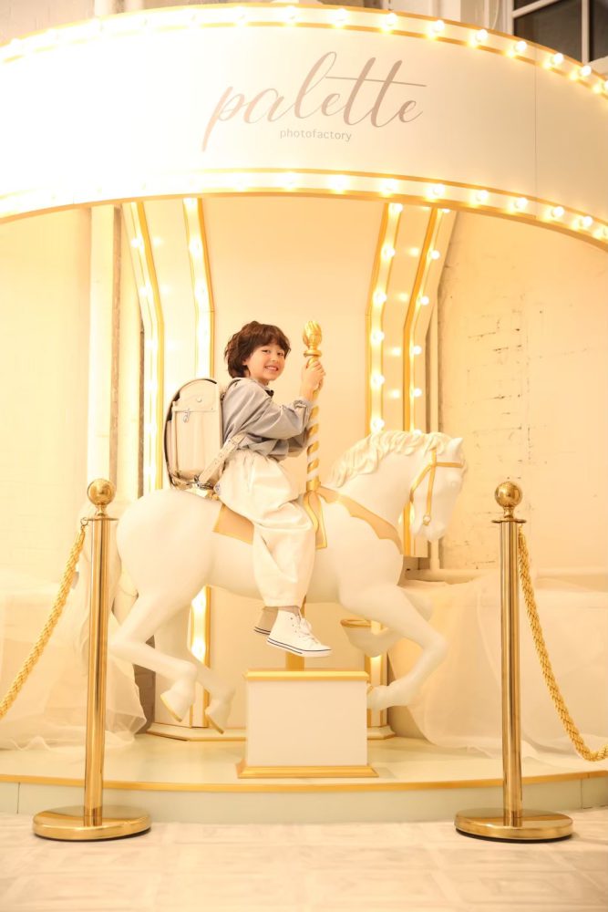 みなさんこんにちは! 北海道札幌市中央区にあるベビー&キッズフォトスタジオ、写真工房ぱれっと札幌ファクトリー店です! ランドセルを身につけた姿を残せるのは今だけ! 入学の後撮りまだまだ受け付けております! 当店の目玉であるメリーゴーラントでの撮影がとても可愛い! 可愛らしい雰囲気から大人っぽい雰囲気まで幅広く撮影することができます。