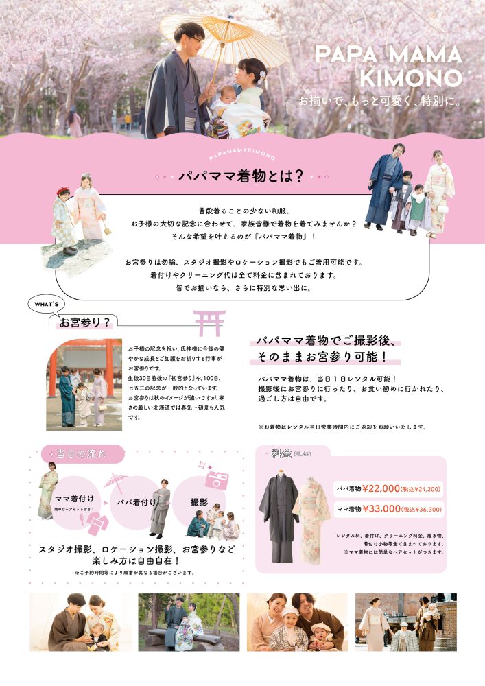 みなさんこんにちは! 北海道札幌市中央区にあるベビー&キッズフォトスタジオ、写真工房ぱれっとサッポロファクトリー店です! 北海道もずいぶん暖かくなりましたね♪ 今日はお宮参りをお考えのパパママ必見! 家族撮影にもお宮参りにも映えること間違い無し!の パパママ着物についてご紹介致します^^