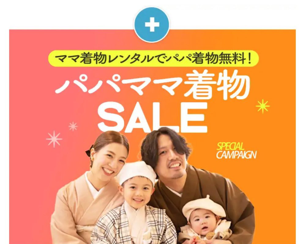 特別キャンペーンによって、ママの訪問着レンタルをしていただきますと、パパの着物を 無料 でお貸出可能となっております!!