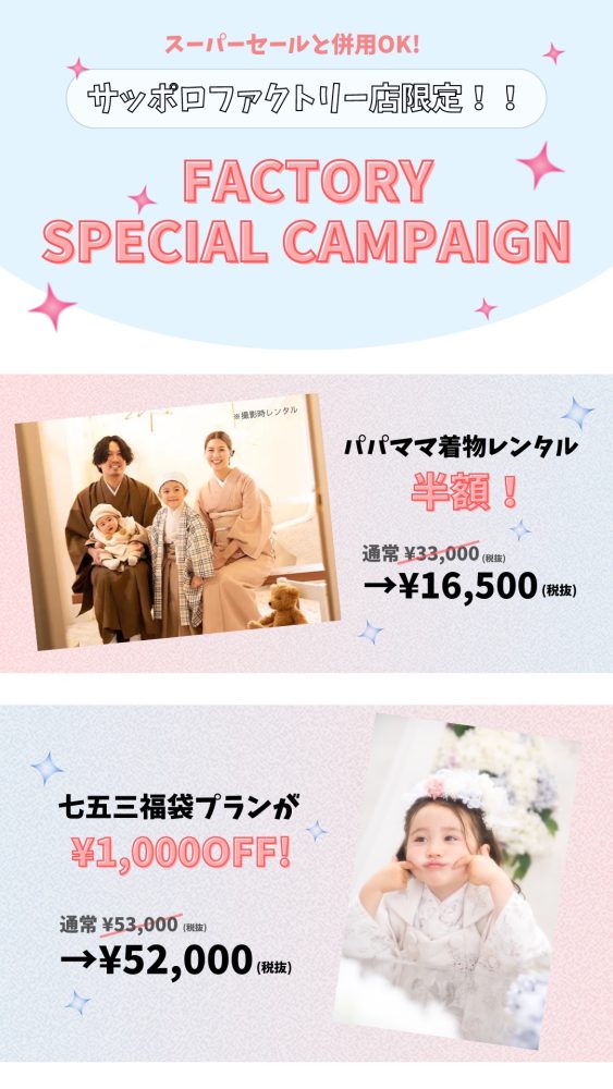 七五三福袋¥1,000OFF!パパママ着付け半額!