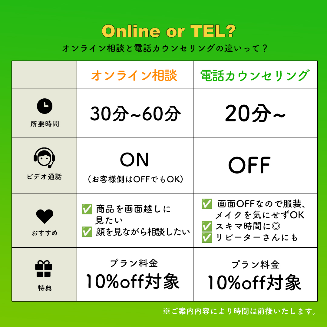 オンライン相談と電話カウンセリング、それぞれおすすめポイントがございます♪