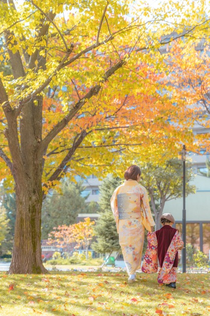 七五三ハイシーズンの秋では、赤色やオレンジ色に変化した木々に囲まれて撮影することができ、とても素敵な写真に仕上がります!