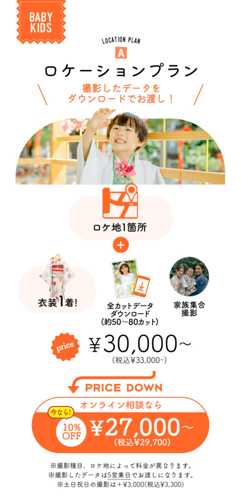 ロケーション撮影とはスタジオなどの屋内ではなく、神社や公園などの屋外にカメラマンも一緒に同行するスタイルのことを指します!