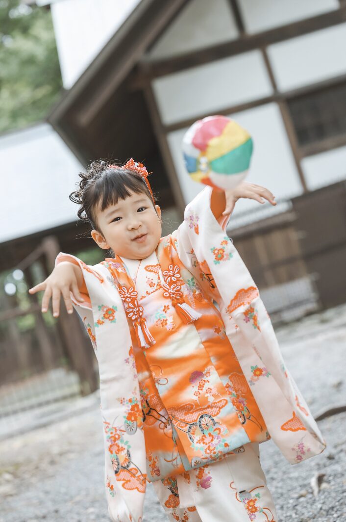 もらった千歳飴のなかにはたくさん小物が入っていて、小物を使ってお子さんと一緒に遊びながらの撮影が楽しめます!