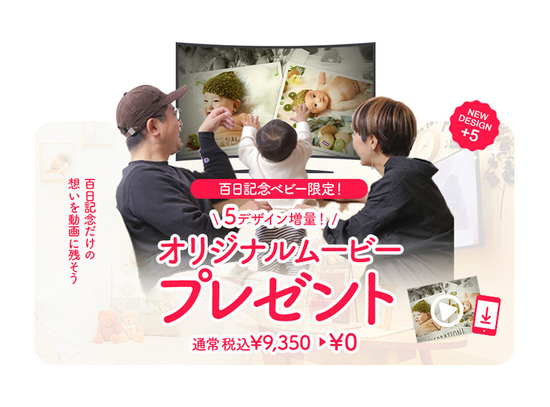 デザイン5パターン増量!百日記念だけの想いを動画に残しませんか?