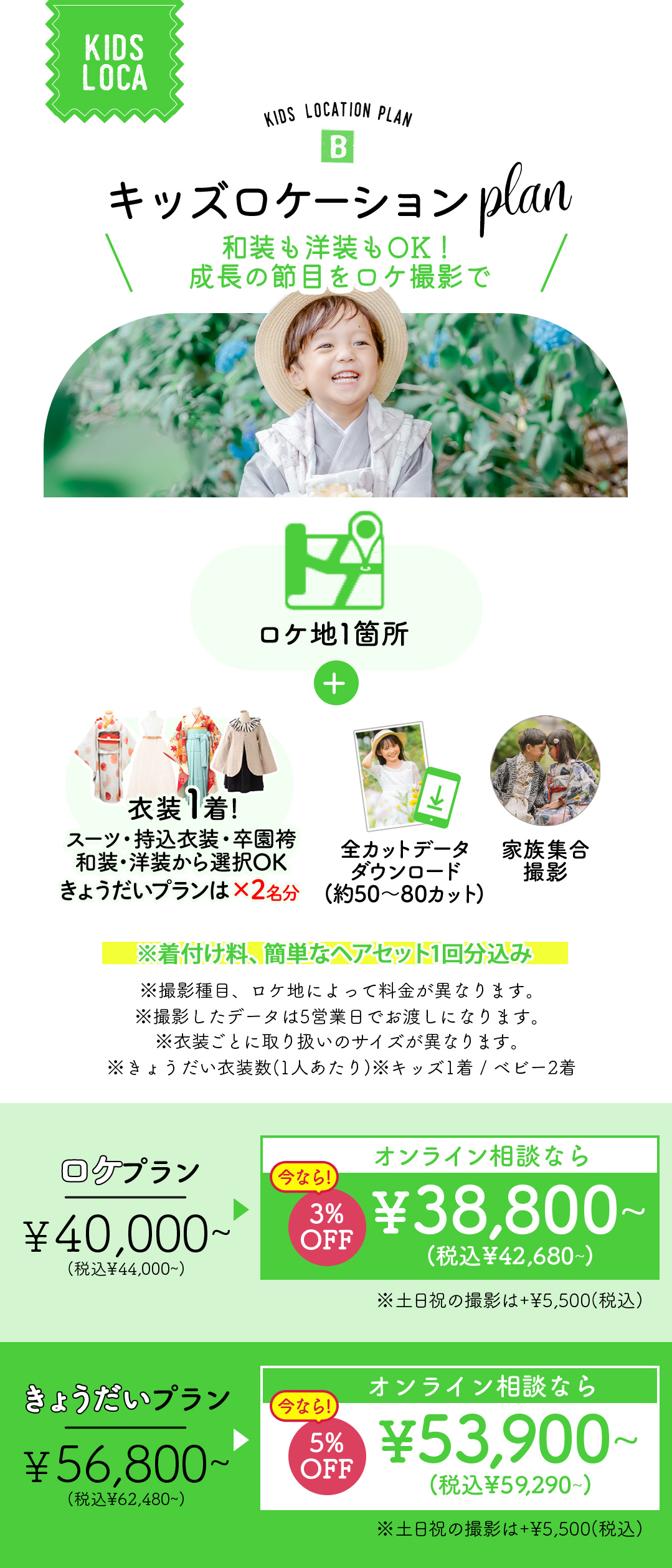 対象種目は、これからのシーズンにぴったりの「七五三」と「卒園入学記念」です。