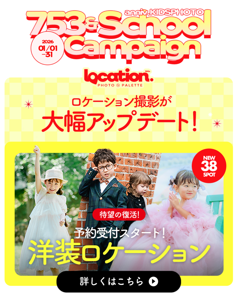 - > 【速報】洋装ロケーションフォト復活!七五三&入学記念を思い出のロケーションの中で残す特別な選択肢。