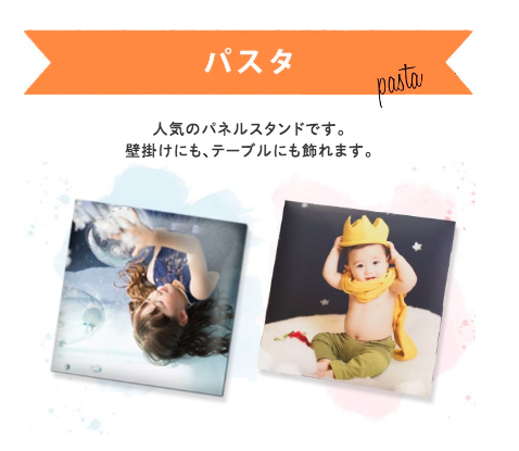 大人気パネルスタンド「PASTA(パスタ)」プレゼント のどちらかをお好きな方を選択できちゃいます!「少しでも予算を抑えたい」なら3%OFF、「可愛い写真を形に残したい」ならPASTAがおすすめですよ♪