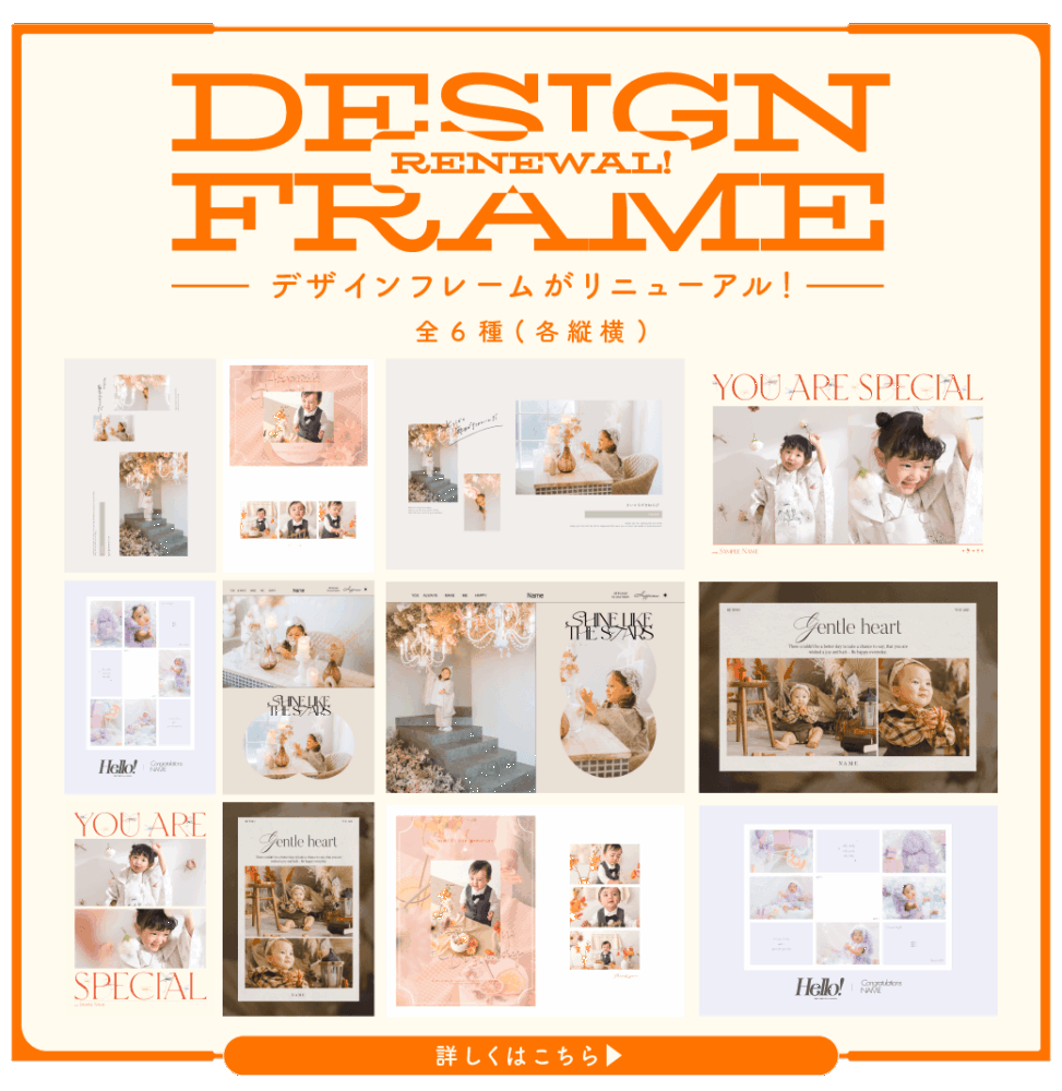 「おじいちゃんやおばあちゃんにも成長を見せたい」という方には、「デザインフレーム」も大好評です!
