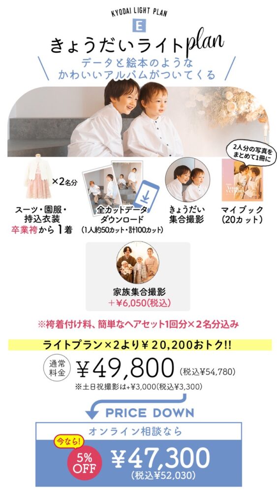 また、「きょうだいプラン」など、ご兄弟一緒に主役として撮影できるプランも充実。
