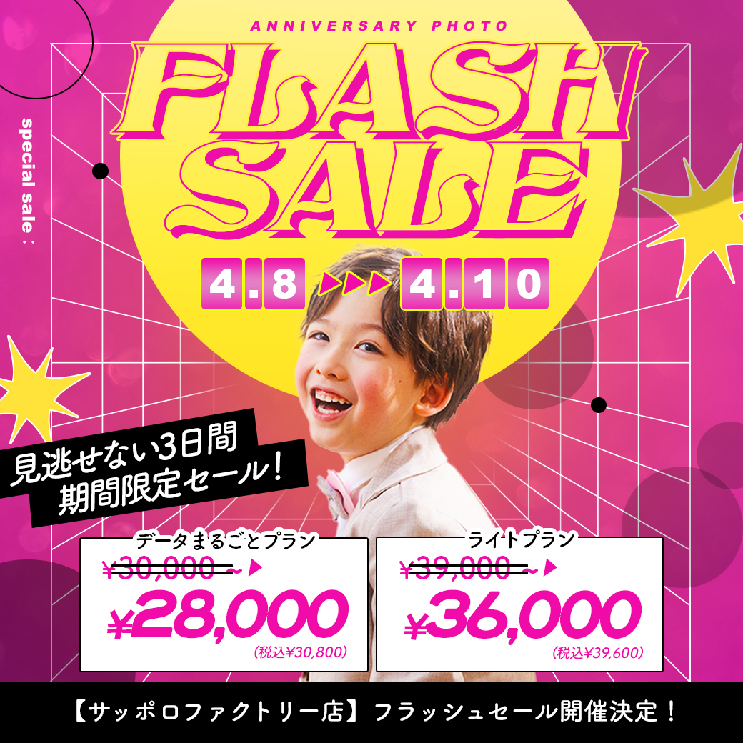 2026/04/06電撃プライス!”フラッシュセール”開催【4/8〜4/10】 / ベビーキッズ全種目記念撮影対象!【サッポロファクトリー店】