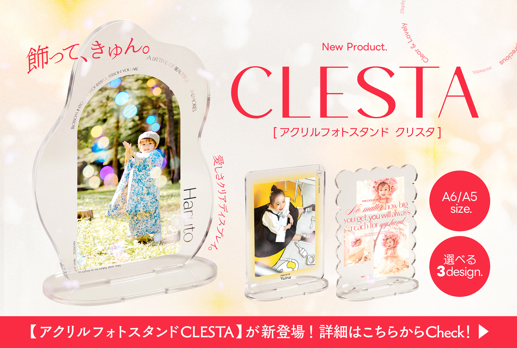 【新商品】アクリルフォトスタンドCLESTA(クリスタ)が新登場!見るたびにキュンとする、あなただけの特別なディスプレイを!