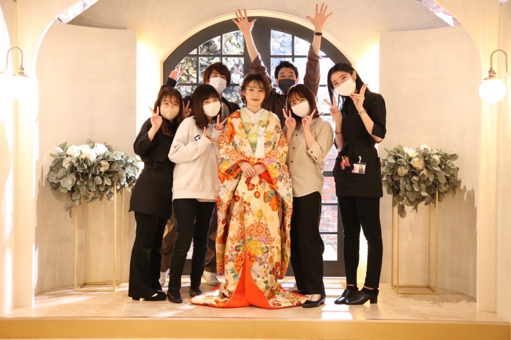 素材を撮りを行い、お客様からこのドレスかわいい!和装はこの組み合わせで撮影したいです!などたくさん声をいただけました・:*+.