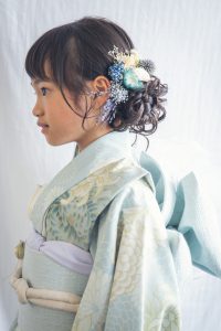 百日さんには産着のお着付け、七五三・卒園・ハーフ成人さんなどには着物のお着付けをします!