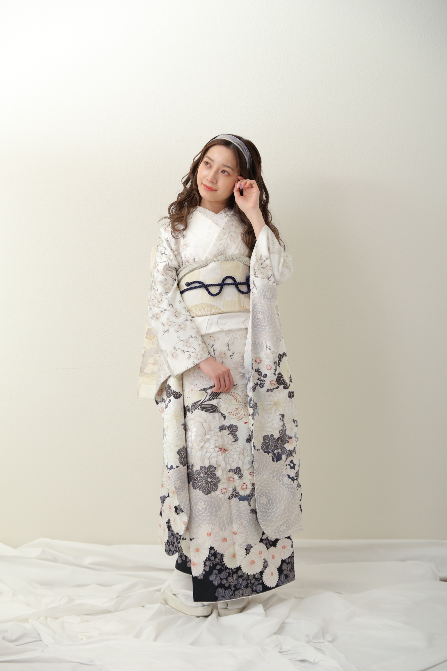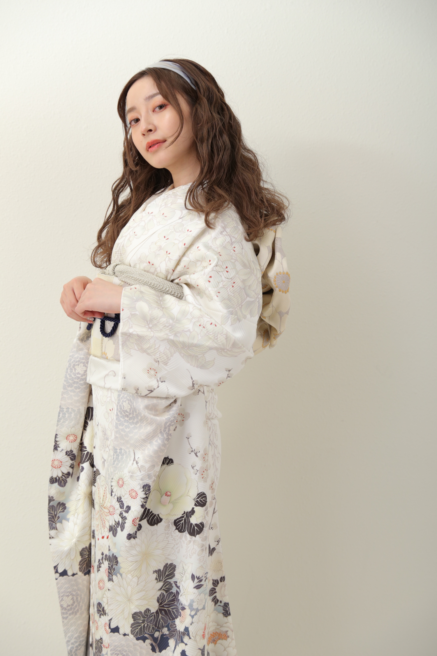 今回ご紹介させていただくお衣装は白とグレーのお振袖となっております!
