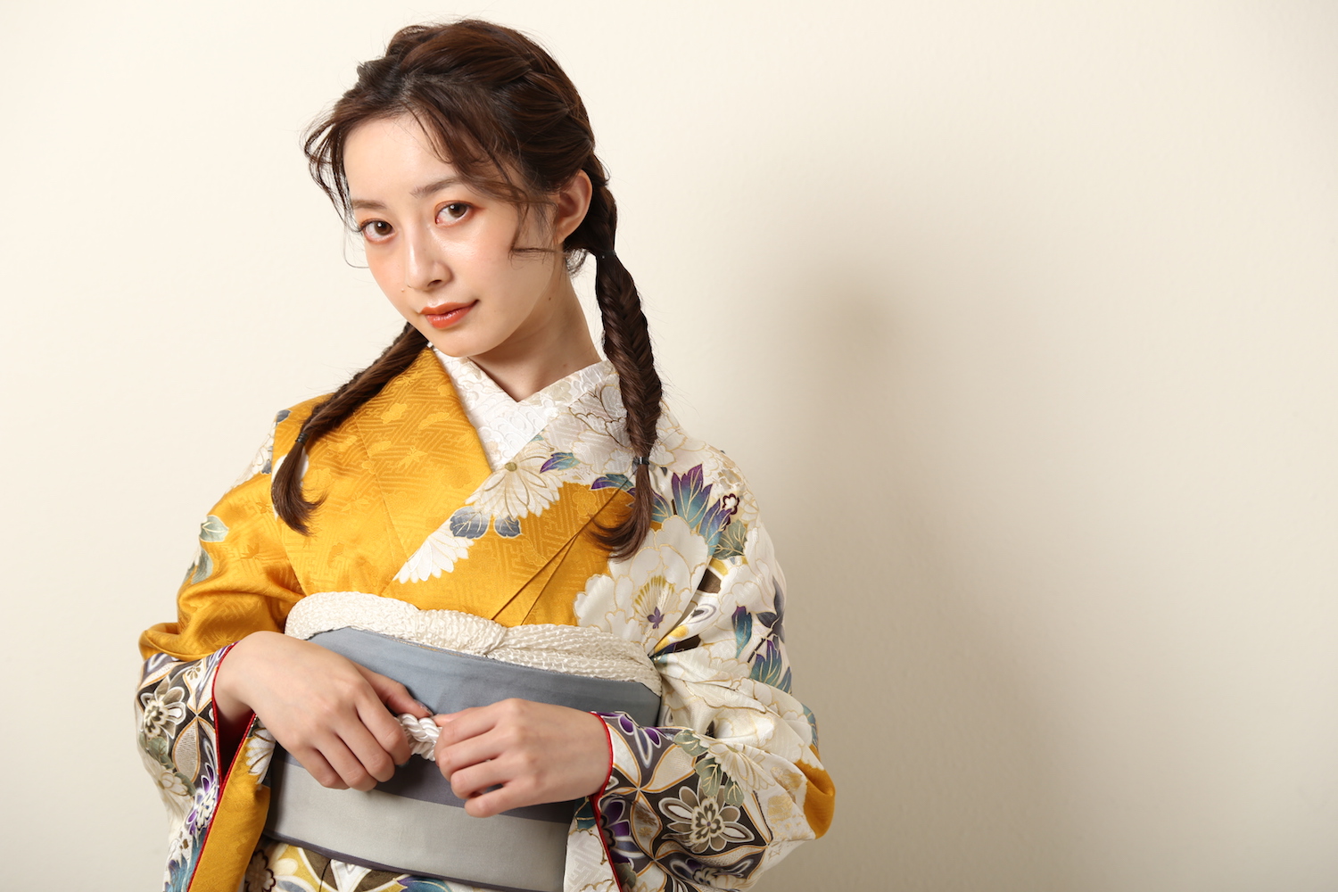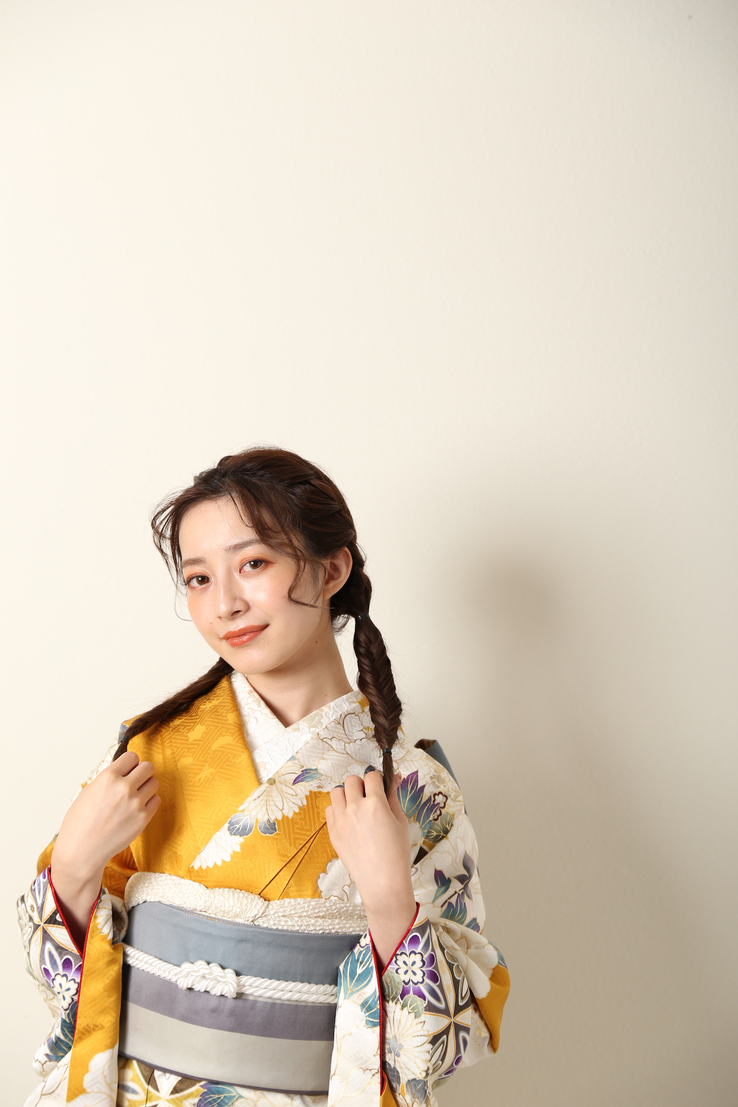 今回ご紹介させていただくお衣装は黄色のレトロなお振袖となっております!!