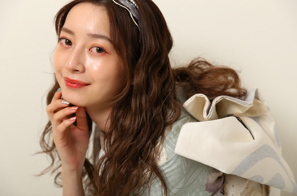 ヘアスタイルはふわふわのダウンスタイルで抜け感をプラス。