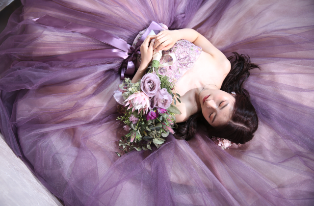ドレスを思いっきり広げてその上の寝転ぶポーズも♡