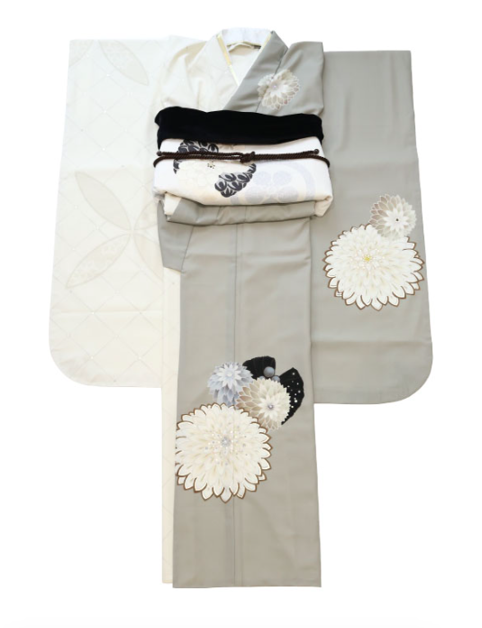 白とグレーのこちらの振袖は大人っぽく、そしてなんと言っても今っぽいのが人気の理由!