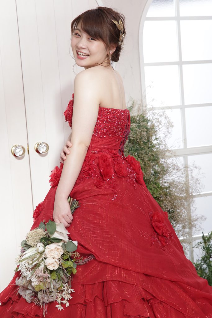 お着物とは雰囲気が変わって真っ赤なドレスにチェンジ!