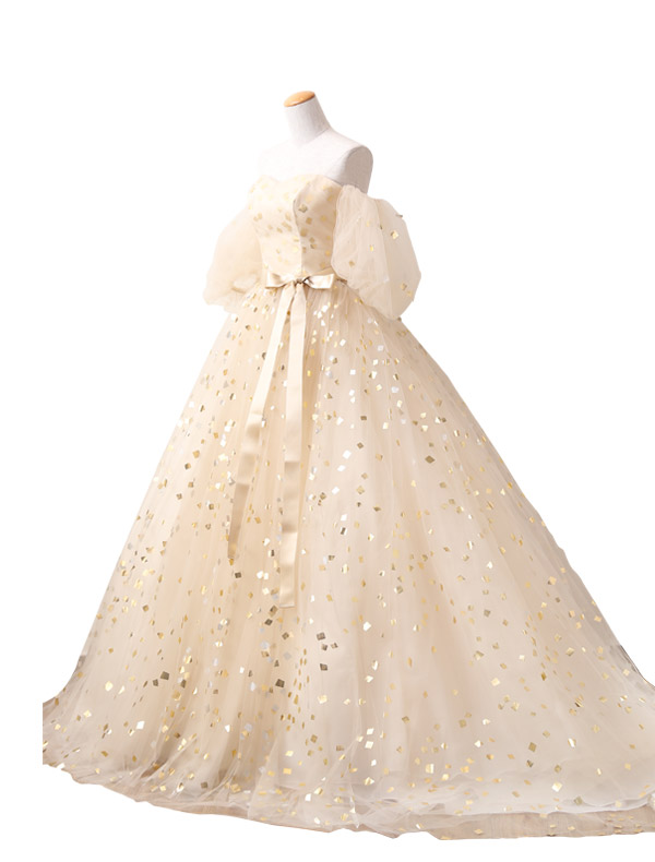 こちらはコンフェッティが散りばめられたような華やかな1着。