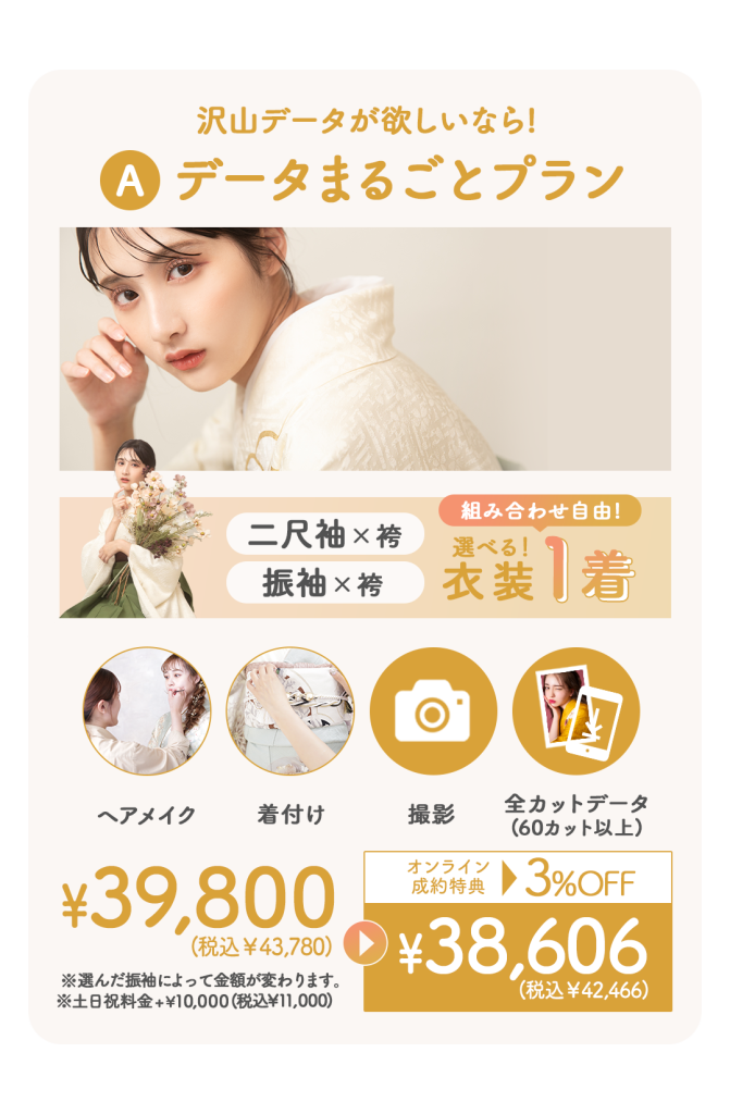 好きなお衣装を一律金額で、選べるので通常のプランと比べると¥39,800もお得になります!!