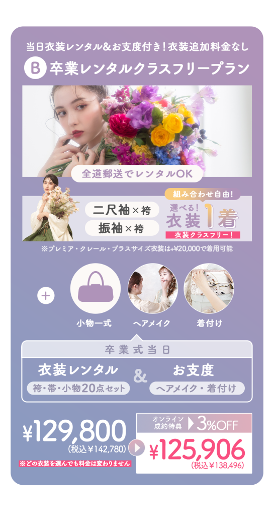 ✳︎卒業コミコミクラスフリープラン当日衣装レンタル&お支度つき✳︎