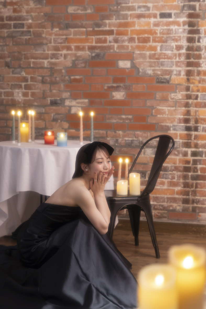 淡い色味のキャンドルがおかれた空間は、新作の黒ドレスがしっかり映えます♡