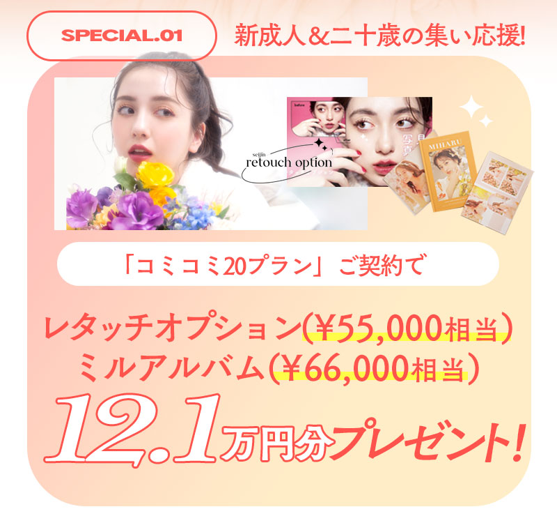 こちらのプランは、20枚のお写真を収録できるアルバムがプランに含まれております。