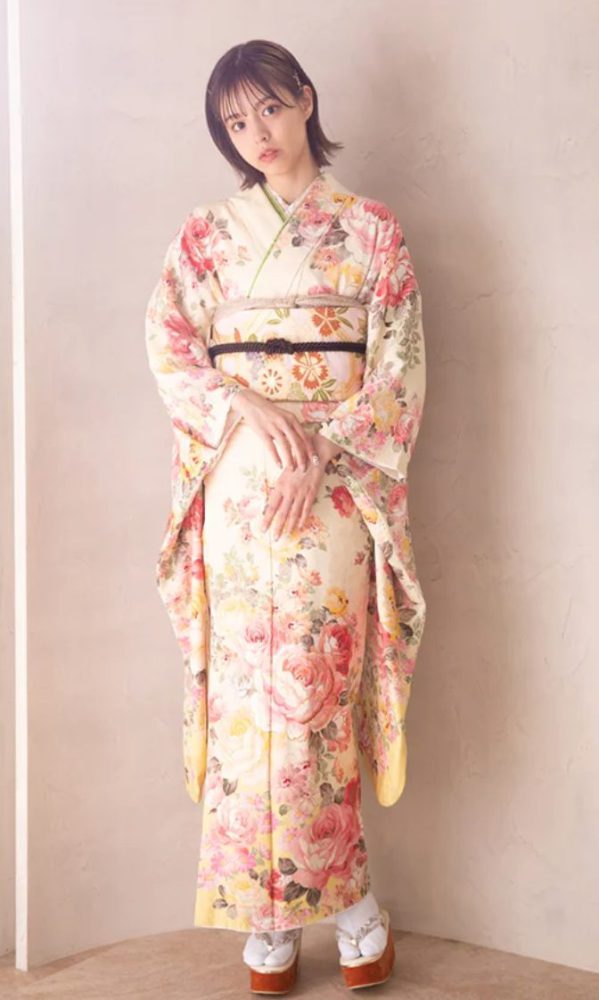 アイボリー系がベースの振袖は、ガーリー派さんには大人気のデザイン。