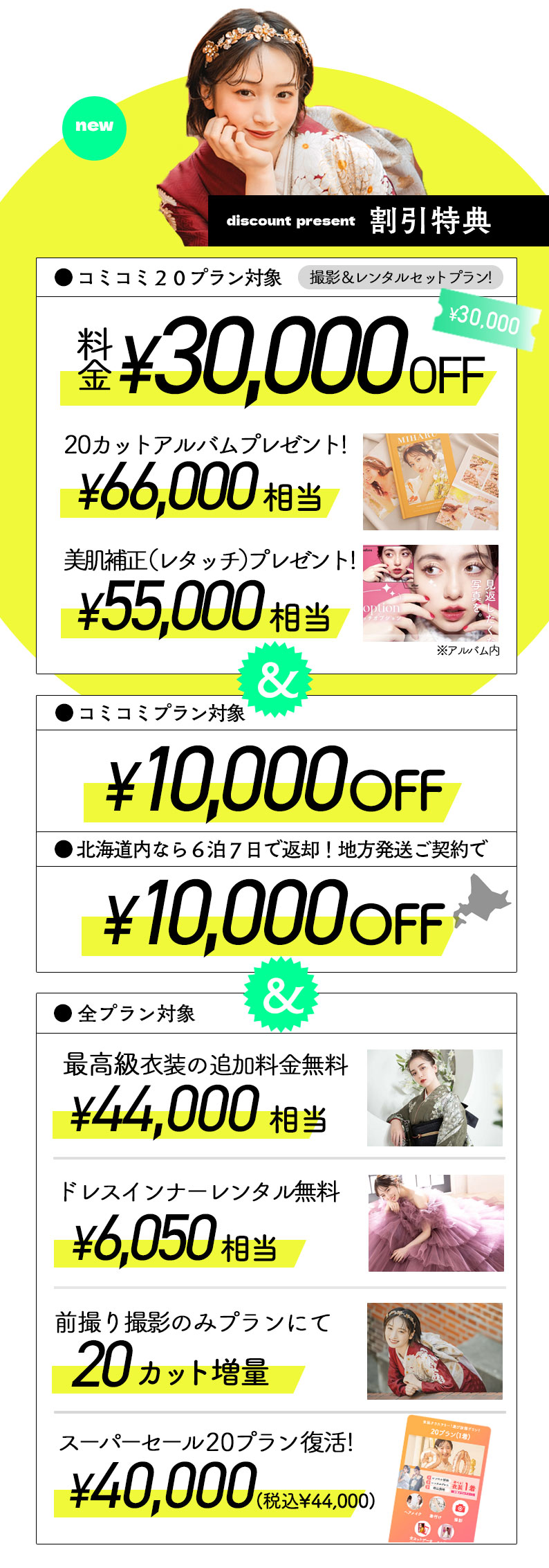 コミコミ20プラン(成人式当日振袖レンタル&撮影プラン)ご契約で