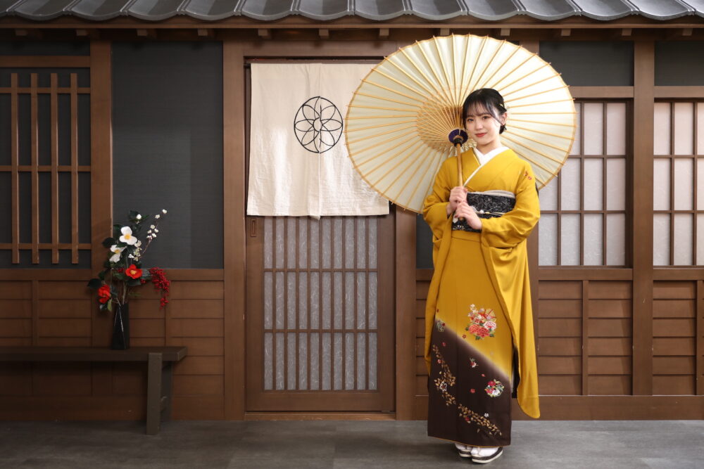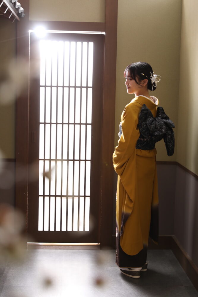 シンプルな辛子色の振袖をレンタルされました!