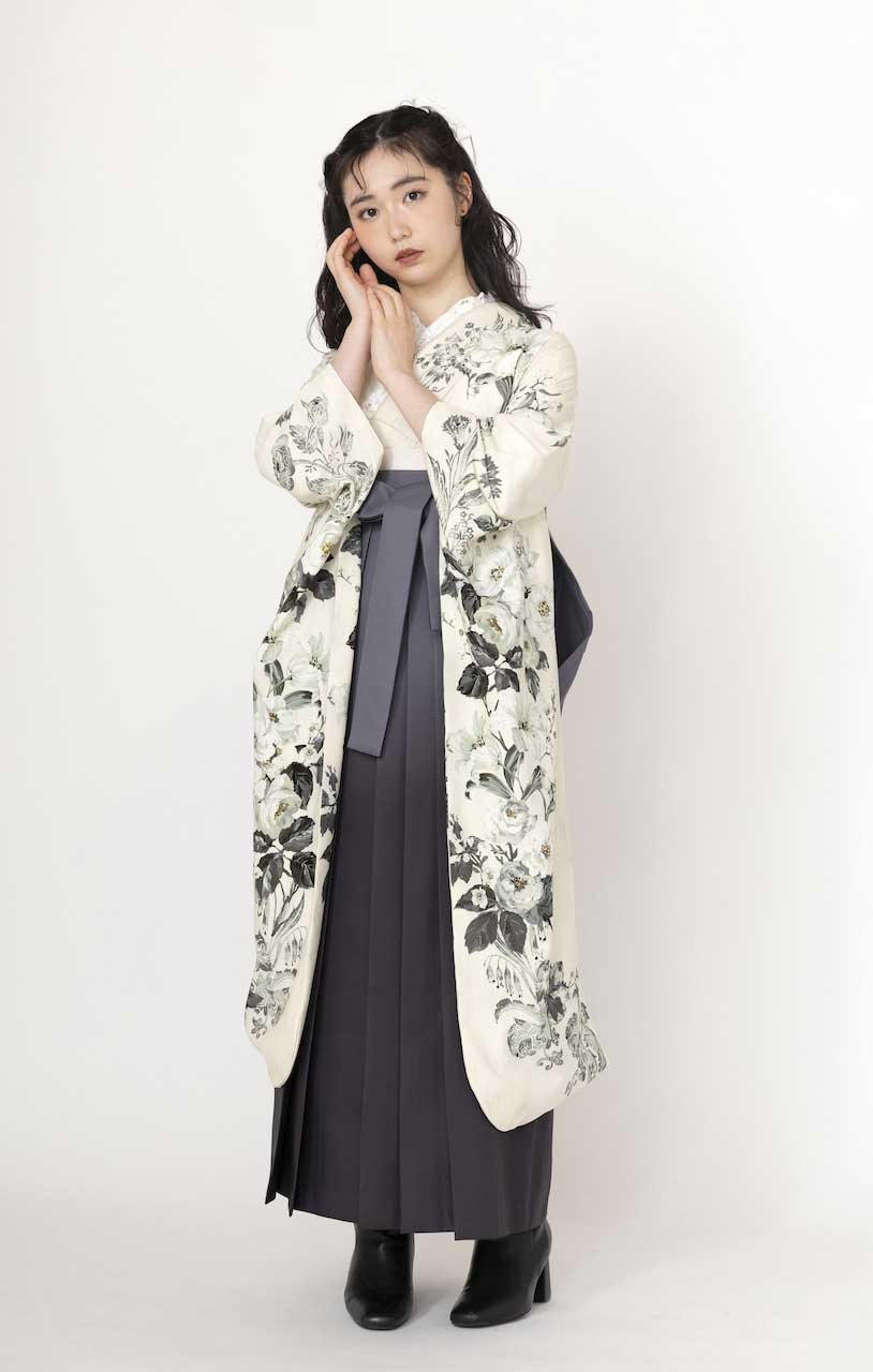 グレーの袴を合わせてワントーンにまとめておしゃれな印象に♡
