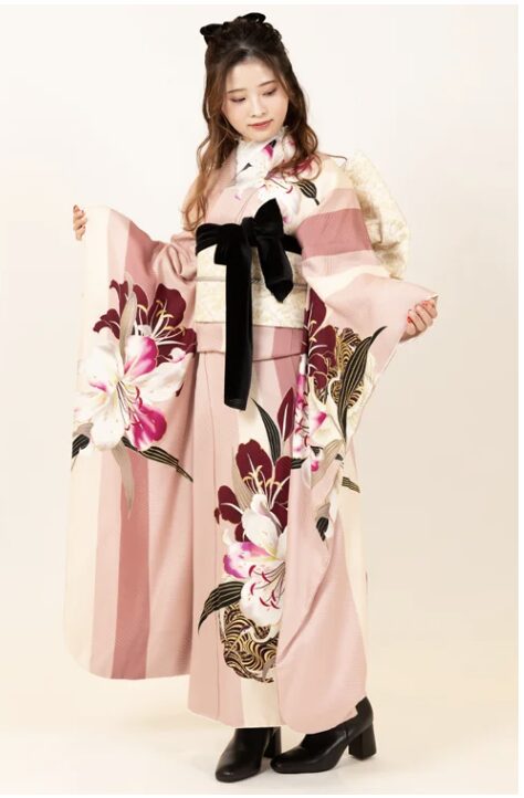 こちらは淡いピンクを基調とした洋風モダンスタイルの振袖です!