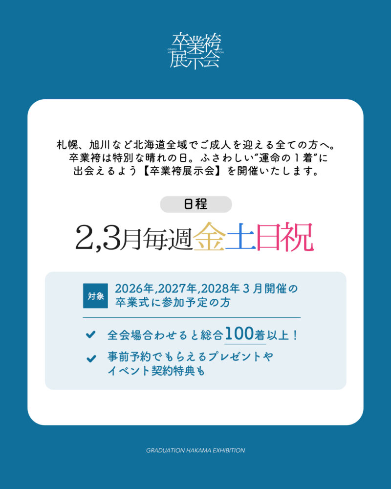 2026/01/23【2026年2月土日祝】札幌卒業袴展示会開催