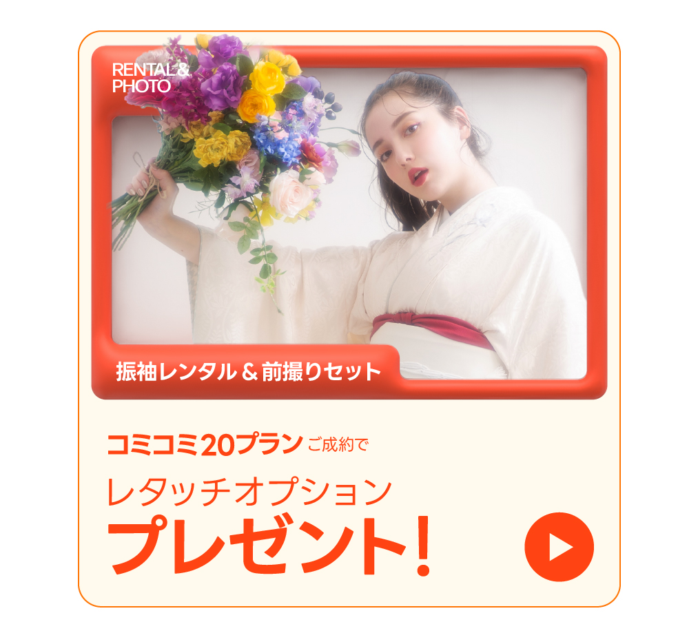 2027-2028年式振袖レンタルプラン「コミコミ20プラン」のご契約で「レタッチオプション」(55,000円相当)プレゼント!🎁✨