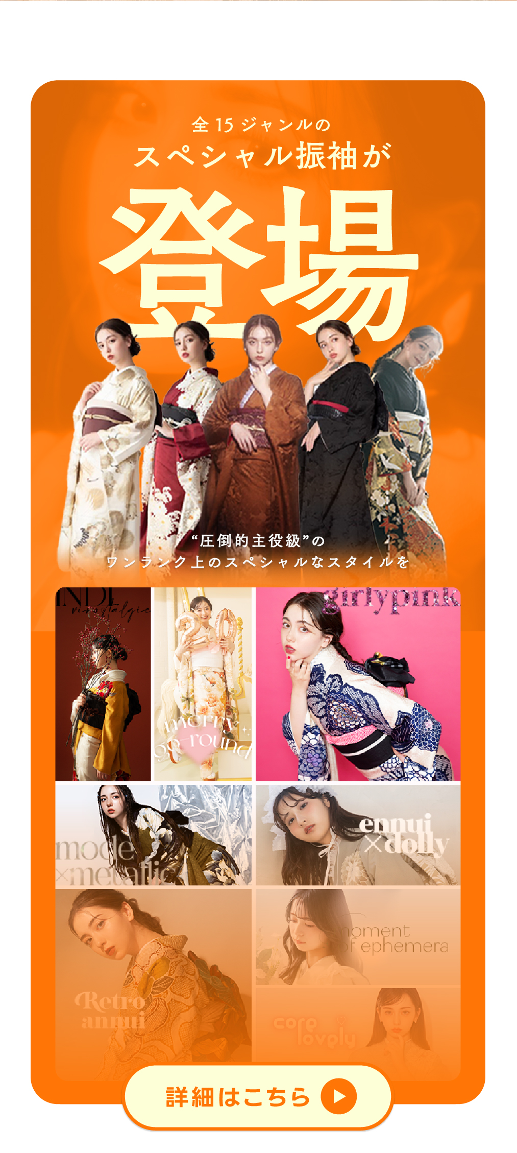 🤍全15ジャンルのスペシャル振袖&選べる4つのヘアメイクスタイルが登場! 「圧倒的主役」をテーマにいつでも輝ける品質&トレンドデザインのプレミアムなコーディネート。心が踊るワンランク上の体験を。