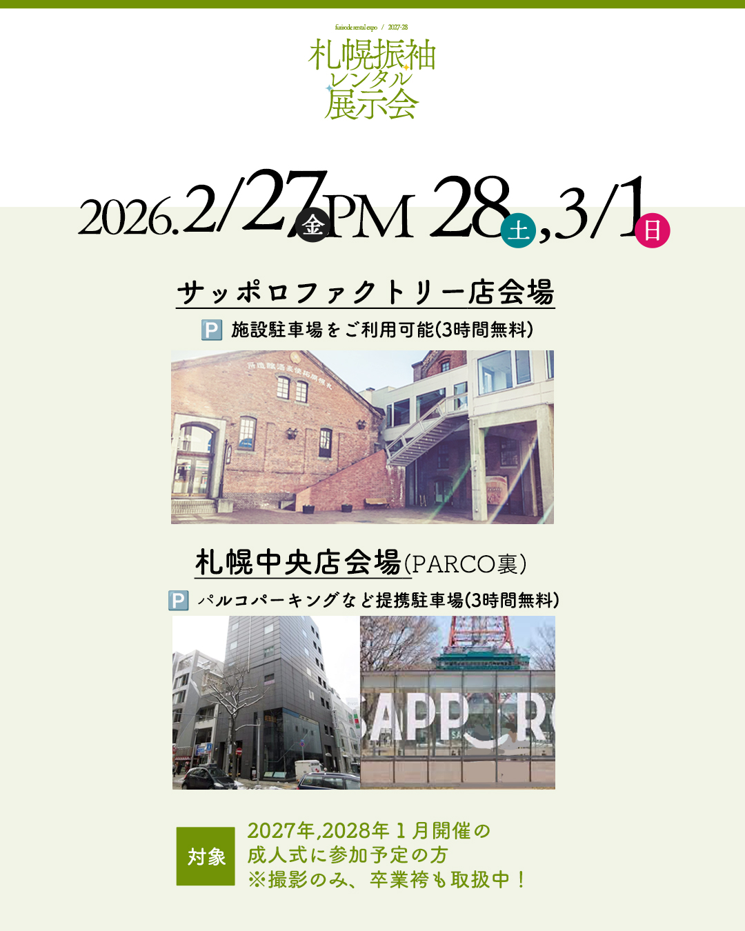 2026/02/13札幌で振袖展示会開催!新作半額など豪華16大特典で成人式をプロデュース