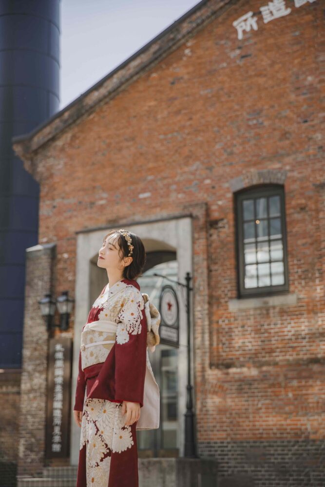 レンガ造りの外観をバックに えんとつ広場やレンガ棟など、札幌らしいロマンチックなロケーションでの撮影は、他では味わえない特別感があります 。