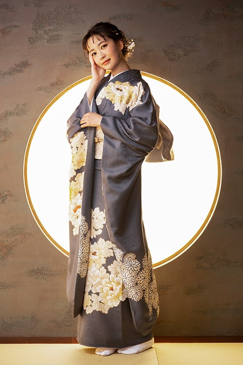 トレンドを押さえたスタジオセット 「脱・赤」のトレンドに合わせたブルーやグレーの振袖に似合う、アンティークやモダンなスタジオをご用意しています 。
