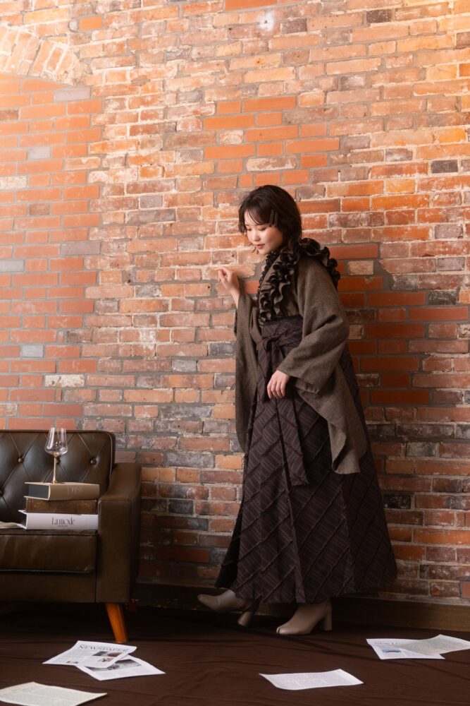 落ち着いたブラウンカラーの卒業袴。