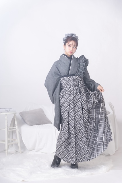 ブラウンのお衣装とカラー違いで、グレートーンの卒業袴。