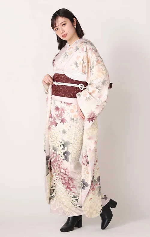 ぱれっとでは、振袖だけでなく小物類まで含めた「20点フルセット」をご用意 。白地の振袖を最も引き立てるトータルコーディネートをスタッフが一緒に考えます 。