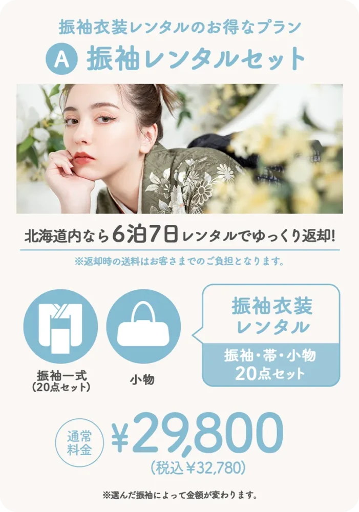 🤍着付けは地元で、振袖レンタルのみの方に嬉しい成人振袖レンタルが新価格!29,800円