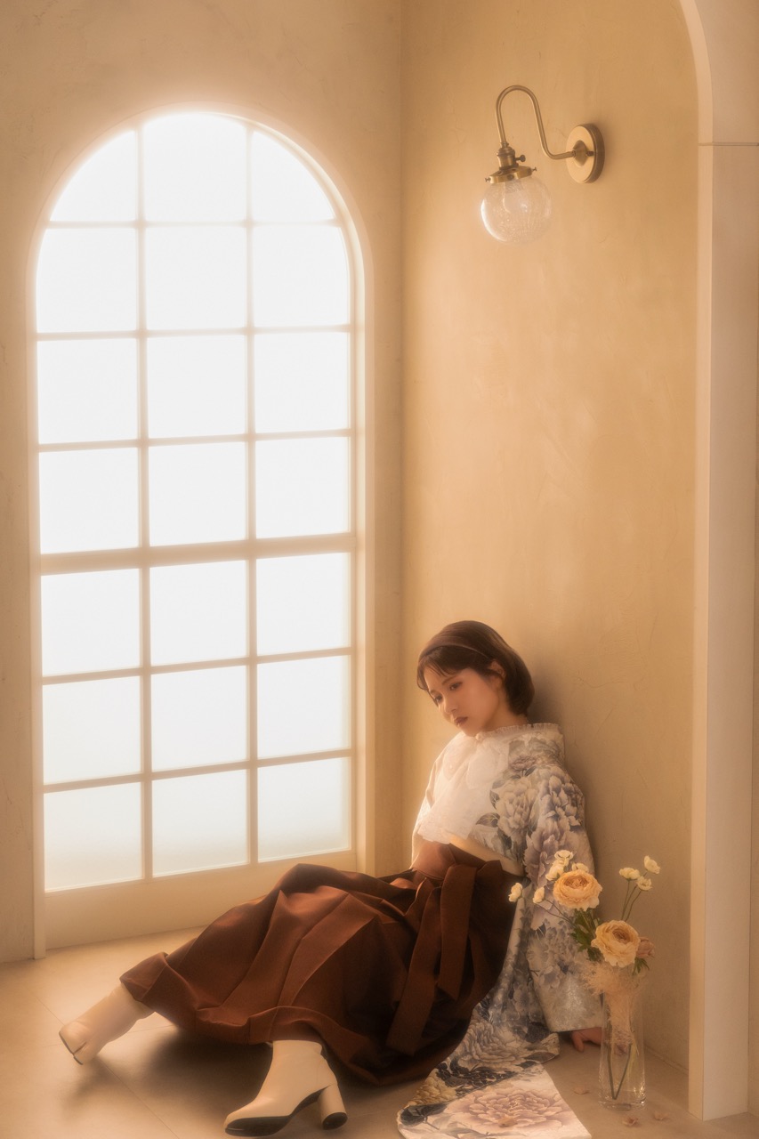 白いカーテンが透明感をアップ!xブルー袴